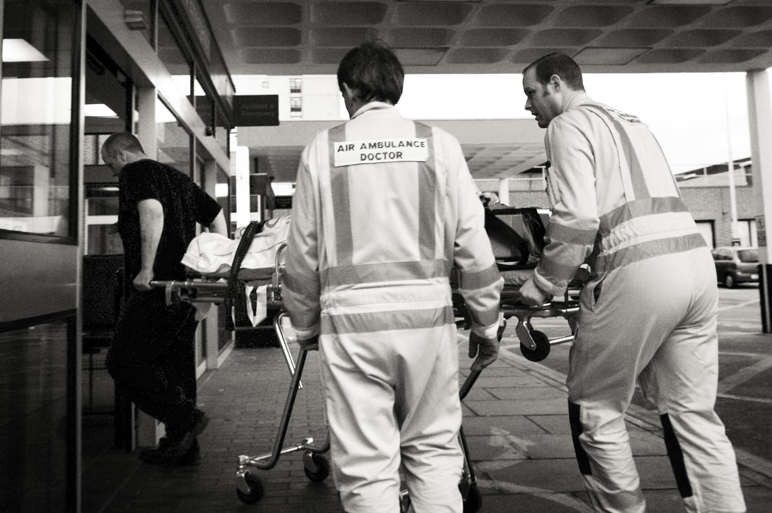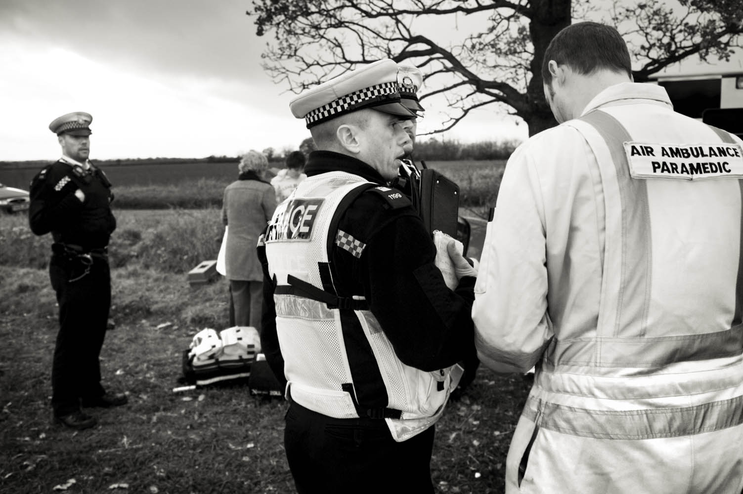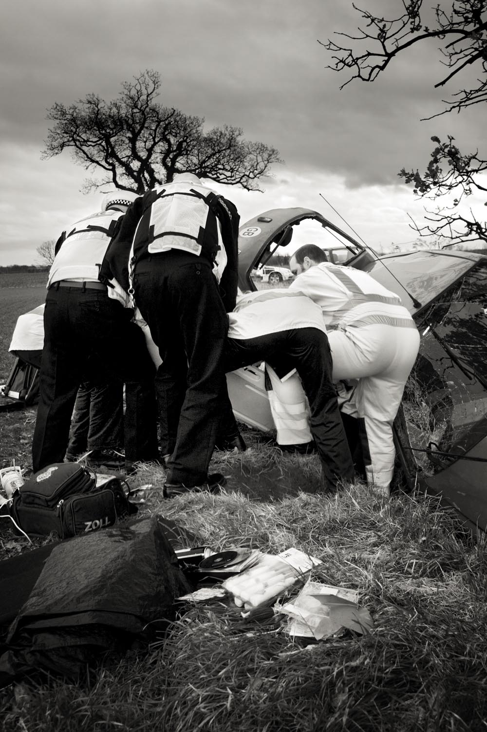 Julian’s black-and-white work with the East Anglian Air Ambulance captures the intensity and vulnerability of emergency response. These gritty, close-range images offer an unfiltered look at the moments surrounding serious incidents, including RTCs, revealing the professionalism and humanity of the crews on scene.