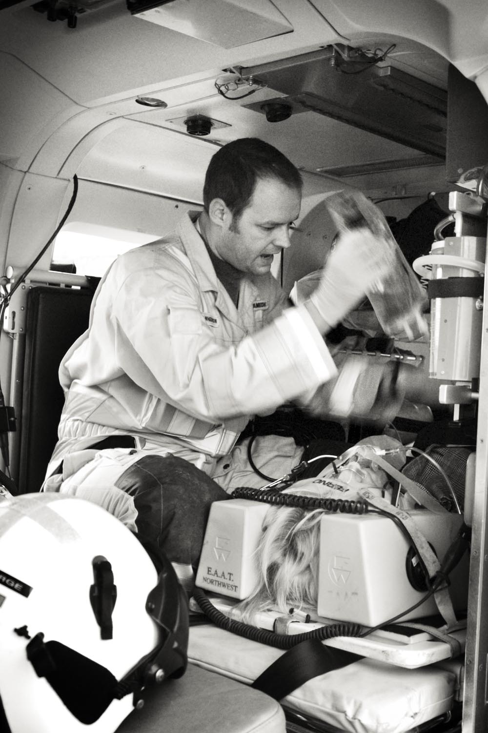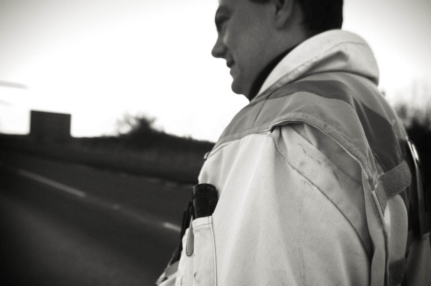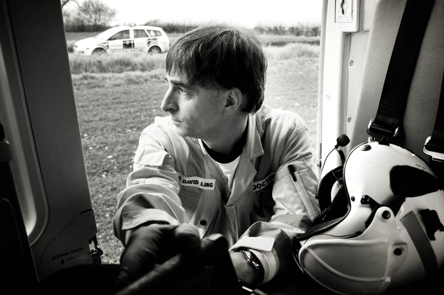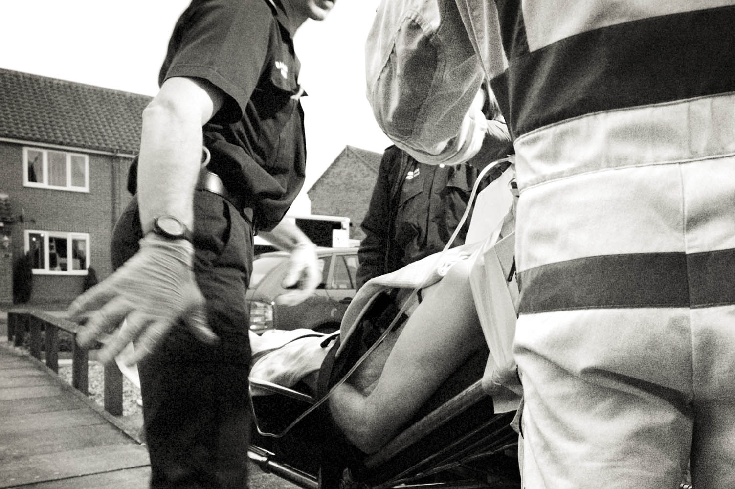 Julian’s black-and-white work with the East Anglian Air Ambulance captures the intensity and vulnerability of emergency response. These gritty, close-range images offer an unfiltered look at the moments surrounding serious incidents, including RTCs, revealing the professionalism and humanity of the crews on scene.
